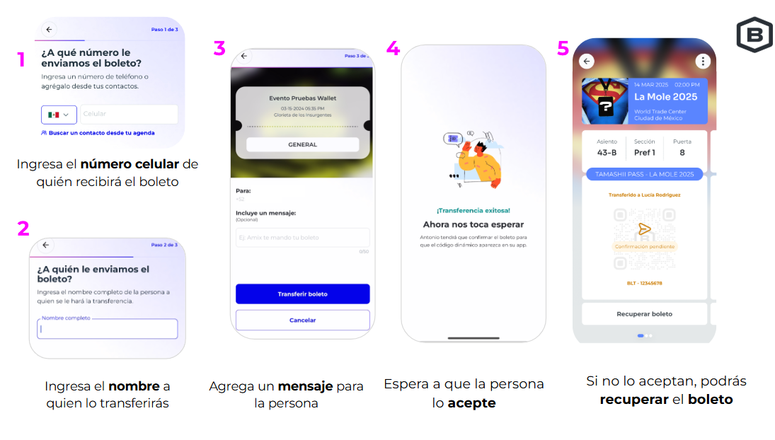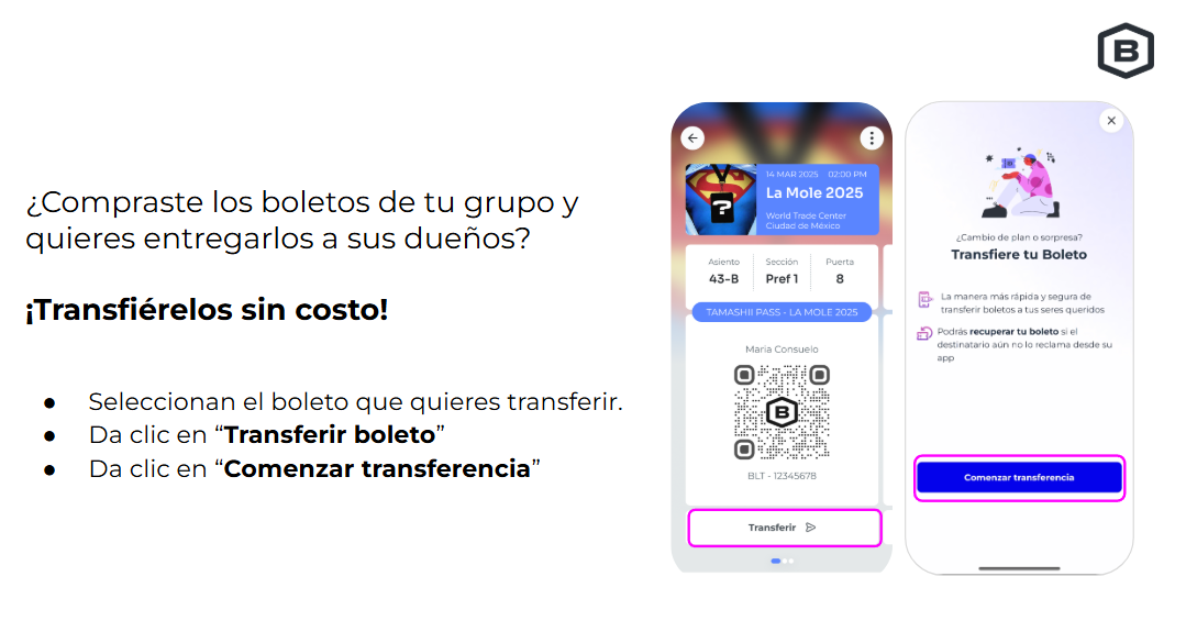 Para transferir tus boletos desde tu App Boletia, sigue los siguientes pasos: